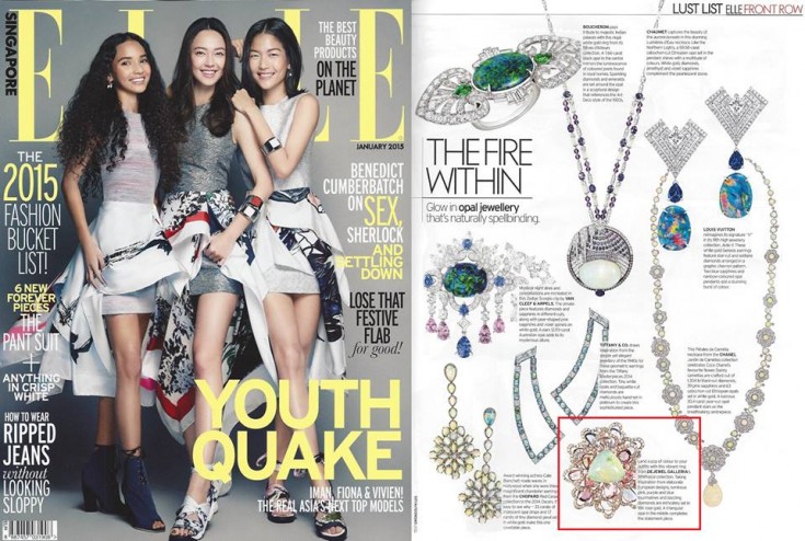 ELLE features a 18karats Rose Gold Opal ring set with pink, purple and blue Tourmalines and Diamonds from Dejewel Galleria.