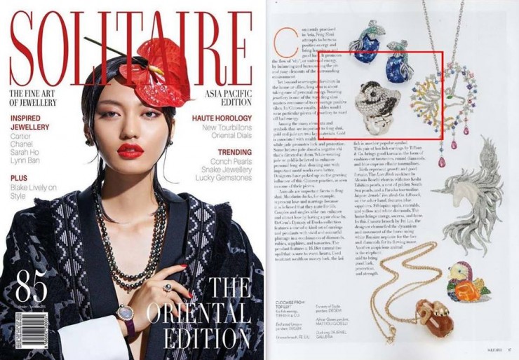 Solitaire features Dejewel Galleria Diamond Mandarin duck ring as feng shui-inspired jewels.
